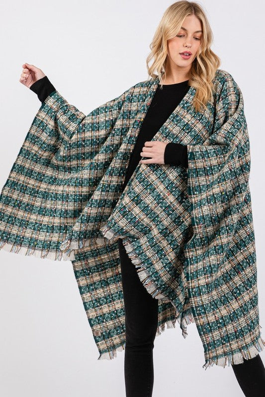 Angel Wings Full Size Multicolored Open Front Fringe Hem Cardigan